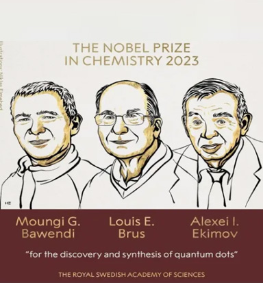 在當(dāng)今的材料應(yīng)用領(lǐng)域中,納米科學(xué)技術(shù)發(fā)展中的多個(gè)里程碑式工作也來自于量子點(diǎn)相關(guān)研究。量子點(diǎn)(Quantum dots, QDs)已經(jīng)成為備受矚目的技術(shù)革命之一。2023年10月4日,瑞典皇家科學(xué)院宣布,美國(guó)麻省理工學(xué)院的蒙吉·巴文迪(Moungi G. Bawendi)、美國(guó)納米晶體科技公司的阿列克謝·?;颍ˋlexei I. Ekimov)和美國(guó)哥倫比亞大學(xué)的路易斯·布魯斯(Louis E. Brus)榮膺2023年諾貝爾化學(xué)獎(jiǎng),表彰他們 “發(fā)現(xiàn)和合成量子點(diǎn)”的科學(xué)貢獻(xiàn)。